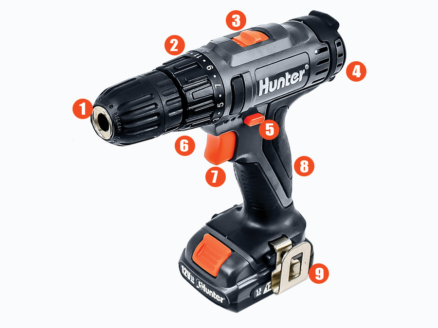 - כפתור כיוון הקדיחה קדימה/אחורה.